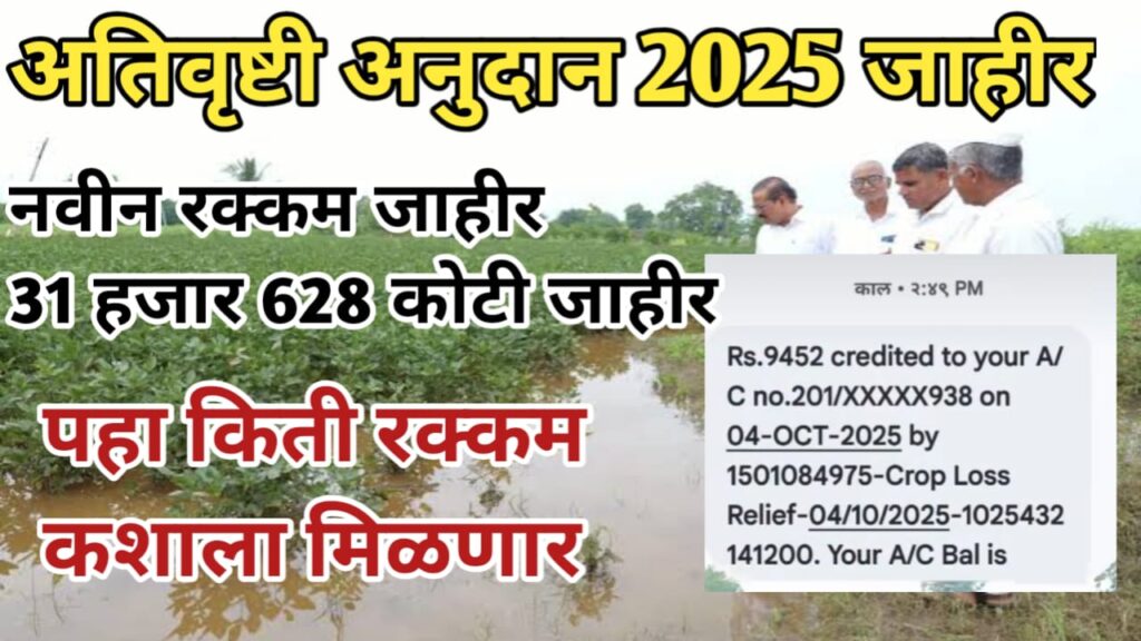 📰 अतिवृष्टी नुकसानभरपाई जाहीर : शेतकऱ्यांना सरसकट अनुदान; थेट खात्यात वर्ग