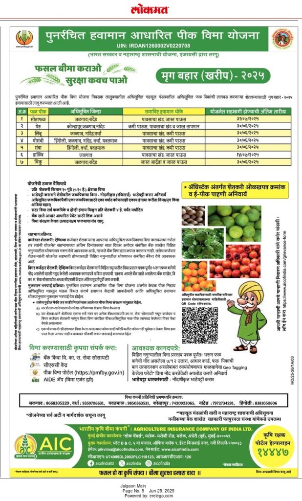 “शासनाकडून ₹1 पिक विमा योजना बंद करण्यात आली आहे. त्यामुळे आपल्या शेतीच्या आराजी प्रमाणे विमा रक्कम लागणार आहे. सर्व शेतकरी बांधवांनी वेळेत अर्ज करून लाभ घ्यावा.”